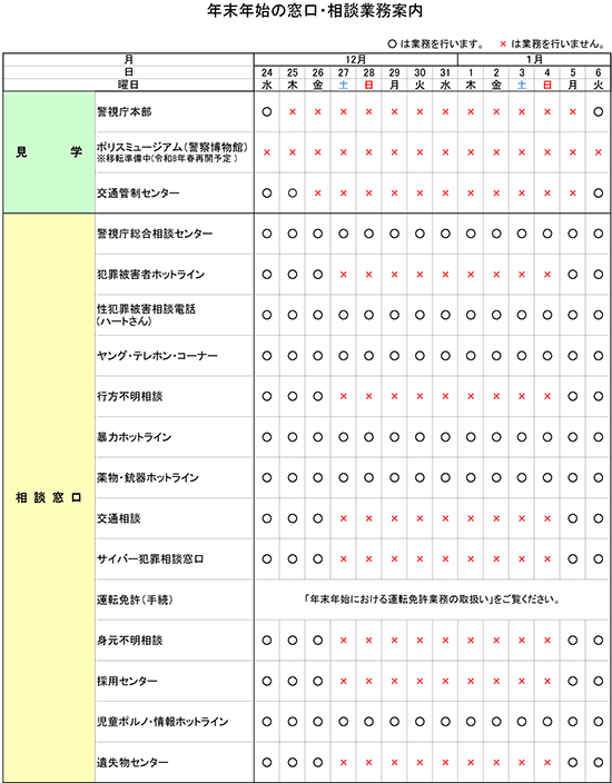 年末年始(12月29日から1月5日まで)の窓口業務は行っておりませんのでご注意ください。