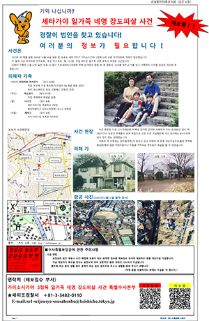 가미소시가야 3정목 일가족 네명 강도피살 사건수사 협력회 현상금 한도액1,700만엔