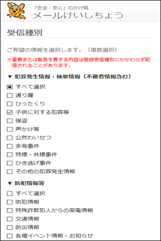広く注意喚起をする必要がある情報については、選択している警察署からもメールが届く場合があります。