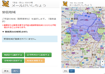 警視庁では、各地域で発生した「犯罪発生情報」や犯罪を防ぐために必要な「防犯情報」等をメールでお知らせします。